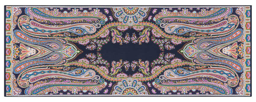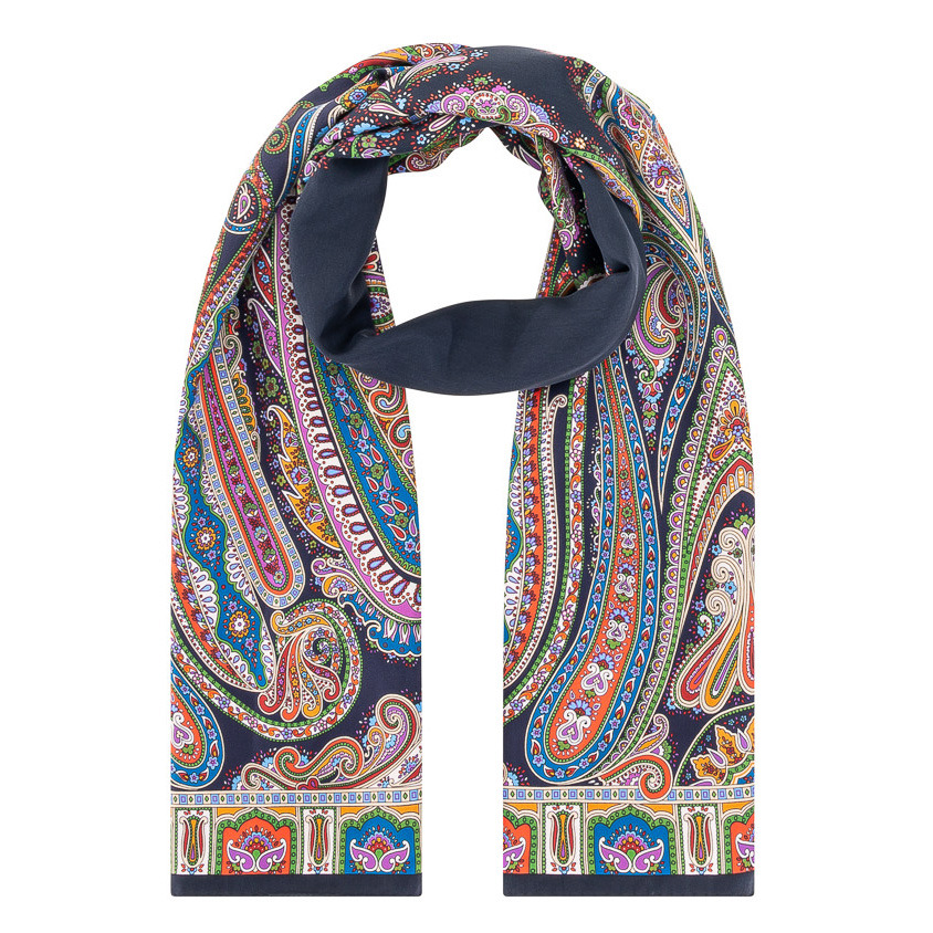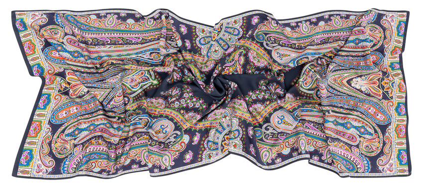 Marine-Fondfarbe mit vielen Farbdetails im Paisley-Design auf reinem Seiden-Twill