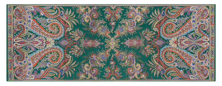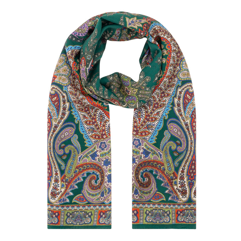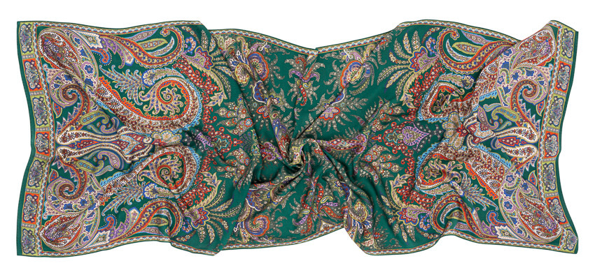 Farbstellung auf klassischem Grün-Farbfond auf edlem Mix von Cashmere mit Seide, Größe 70 x 180 cm