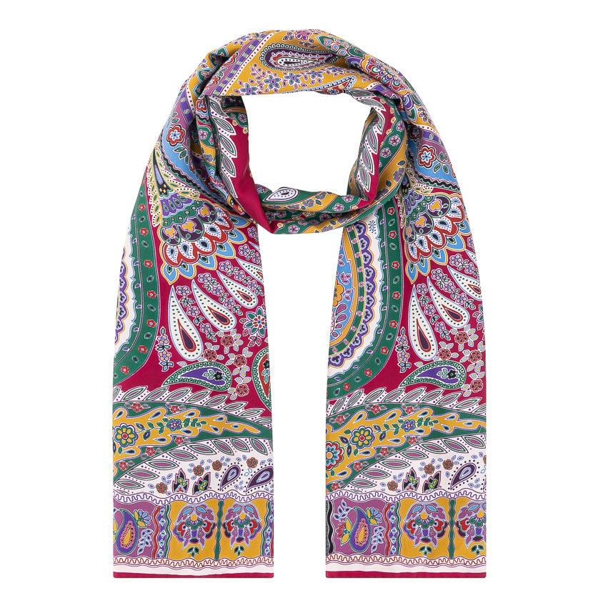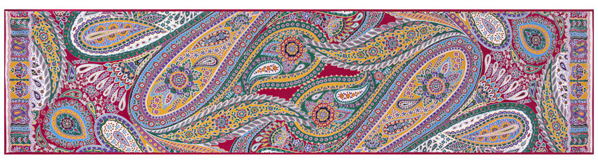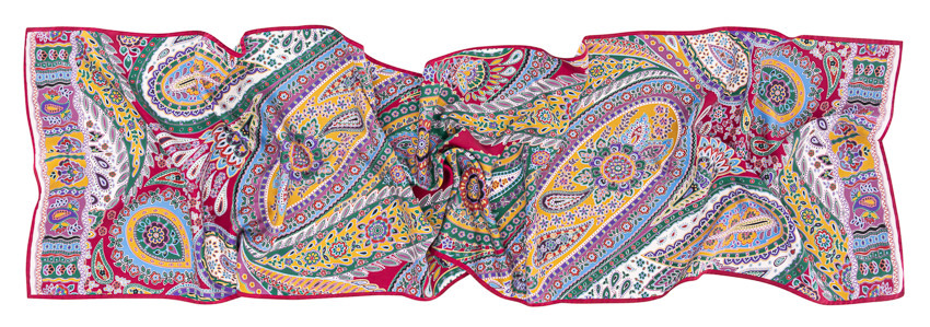 Reichhaltige fuchsia-Farbstellung auf reinem Seiden-Twill in der Größe von 45 x 180 cm