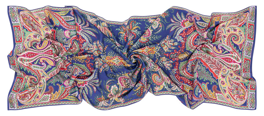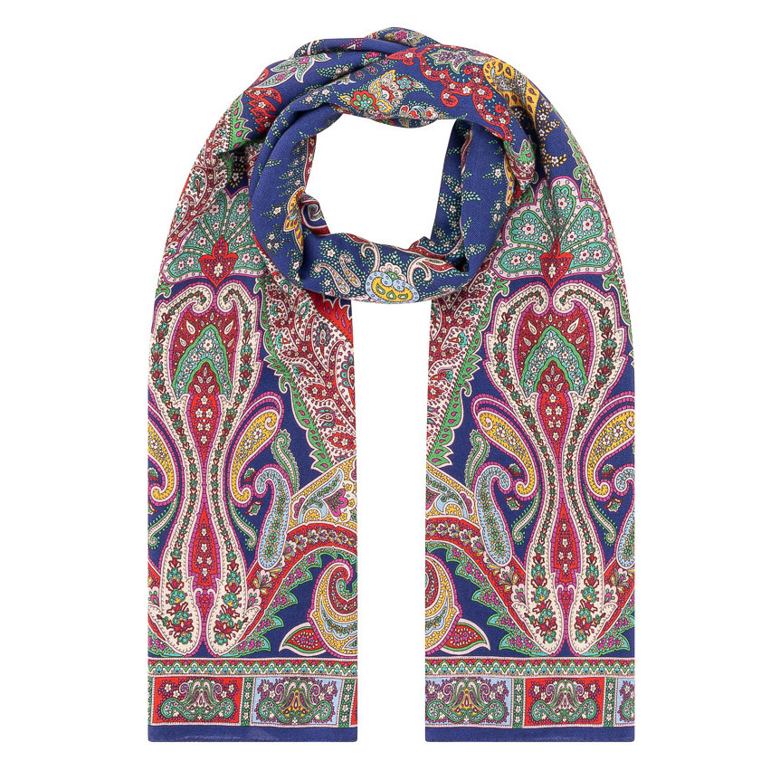 Winter-Royalblaue Farbstellung auf edlem Mix von Cashmere mit Seide, Größe 70 x 180 cm