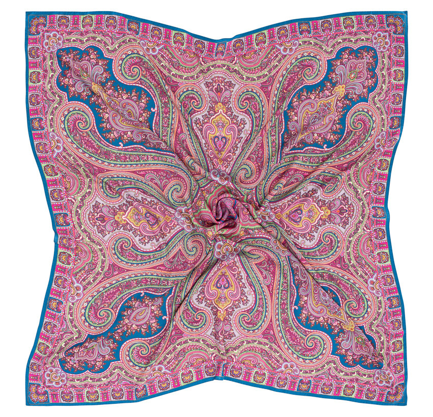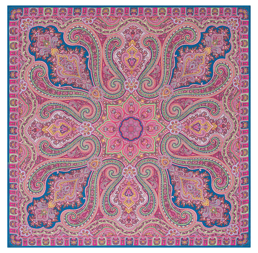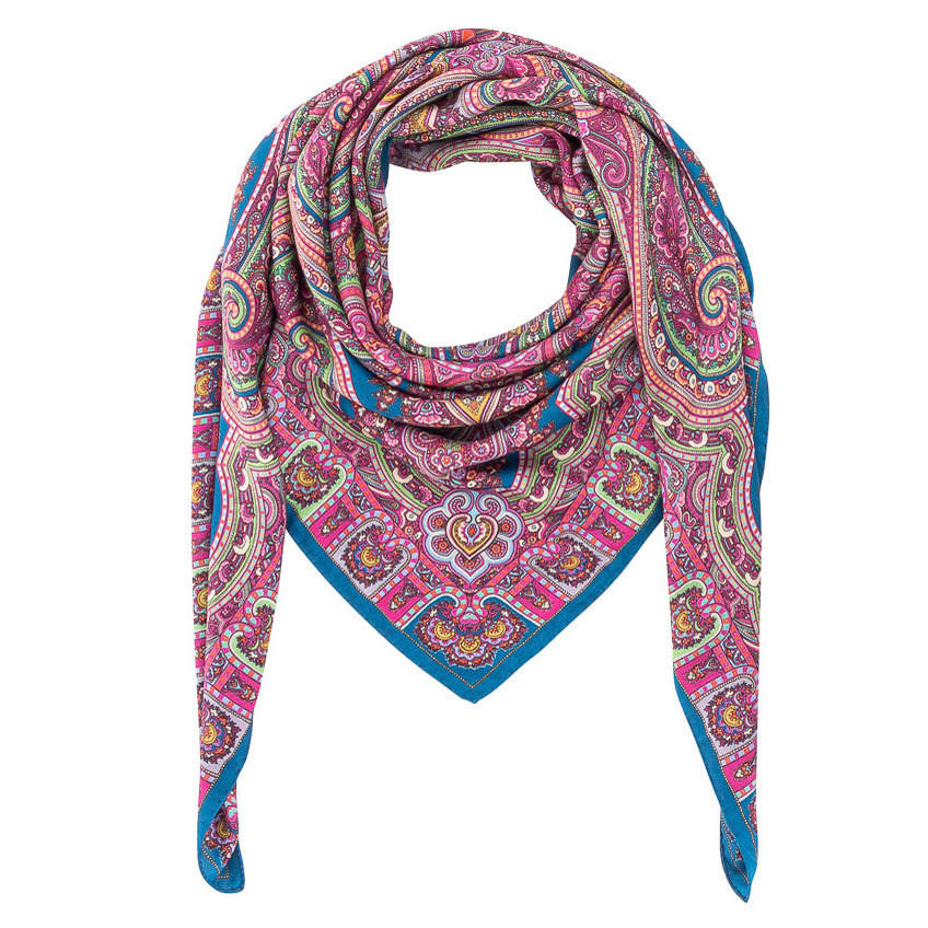 farbenfrohe, royalblaue Farbstellung in klassischem Design auf weicher Cashmere/Seide gedruckt